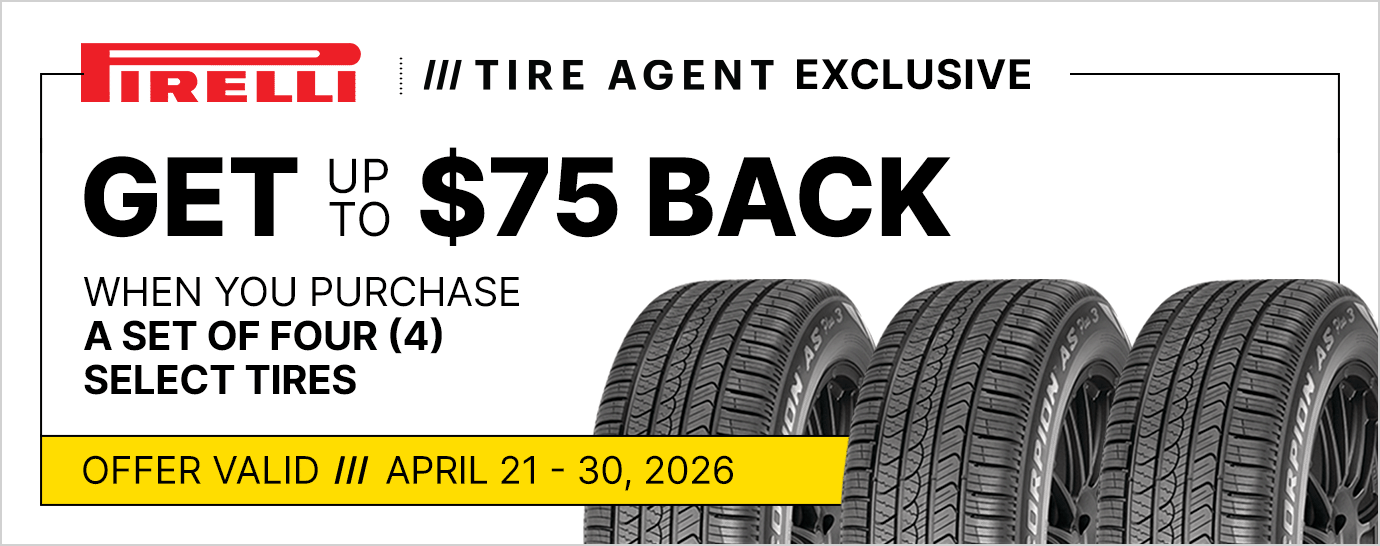 Get up to $75 back when you purchase a set of four (4) select Pirelli tires